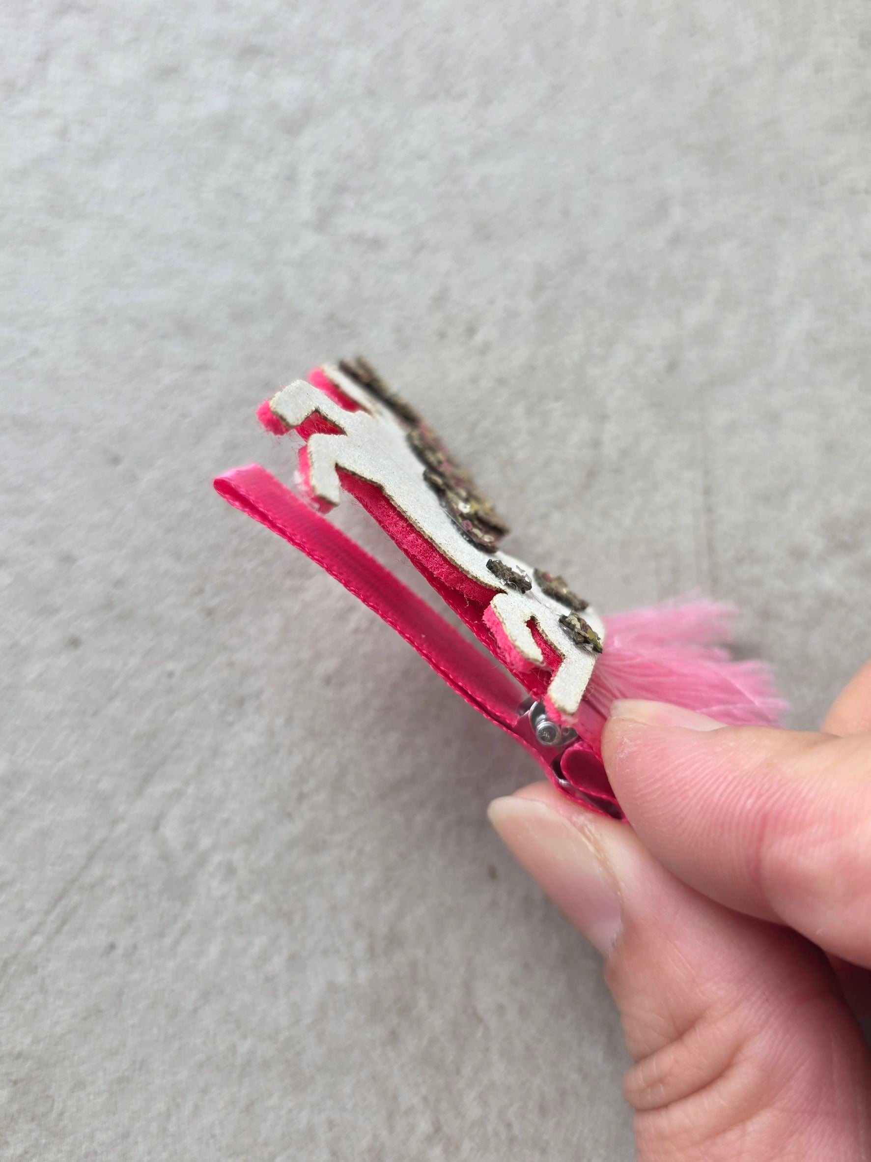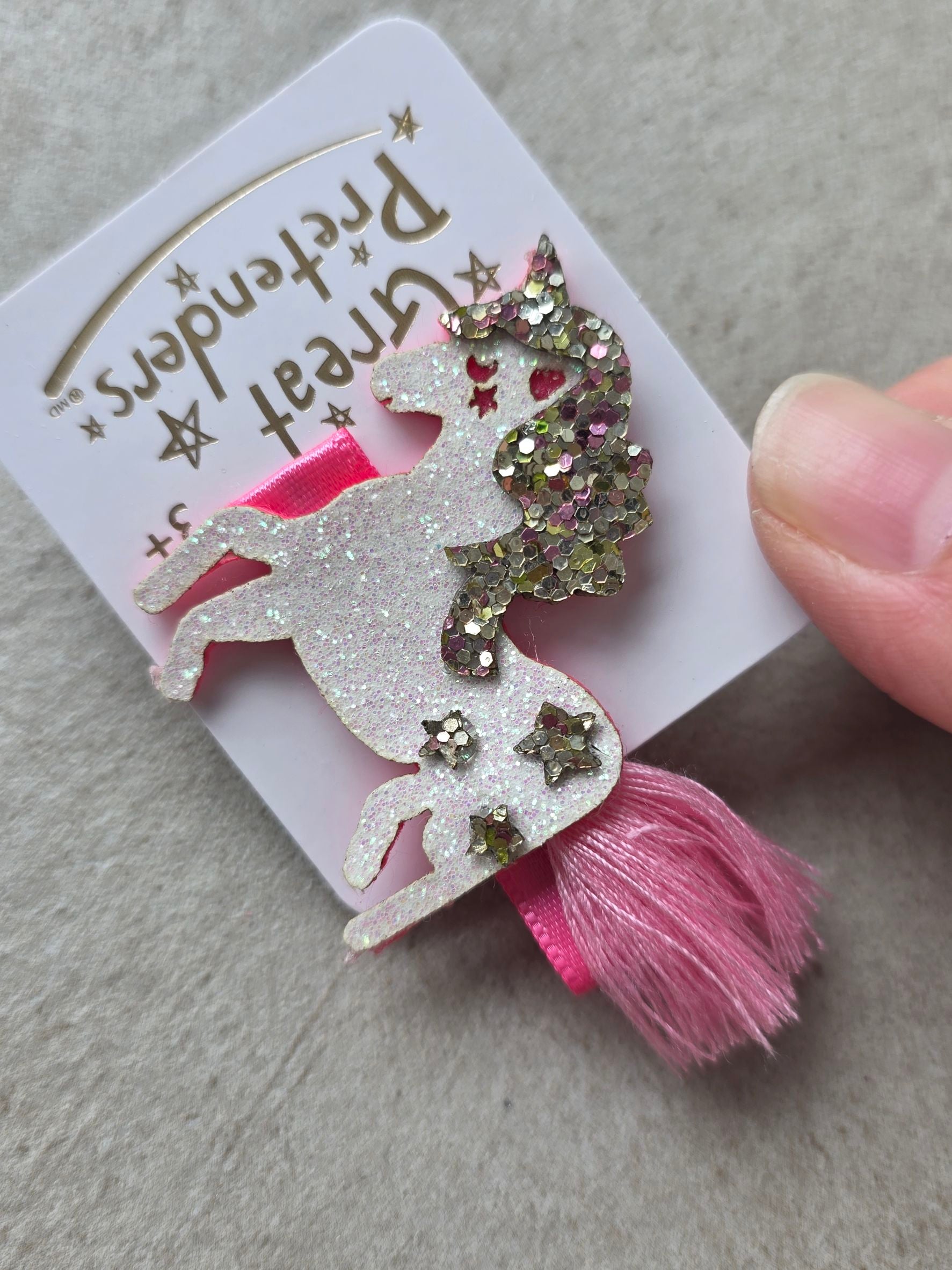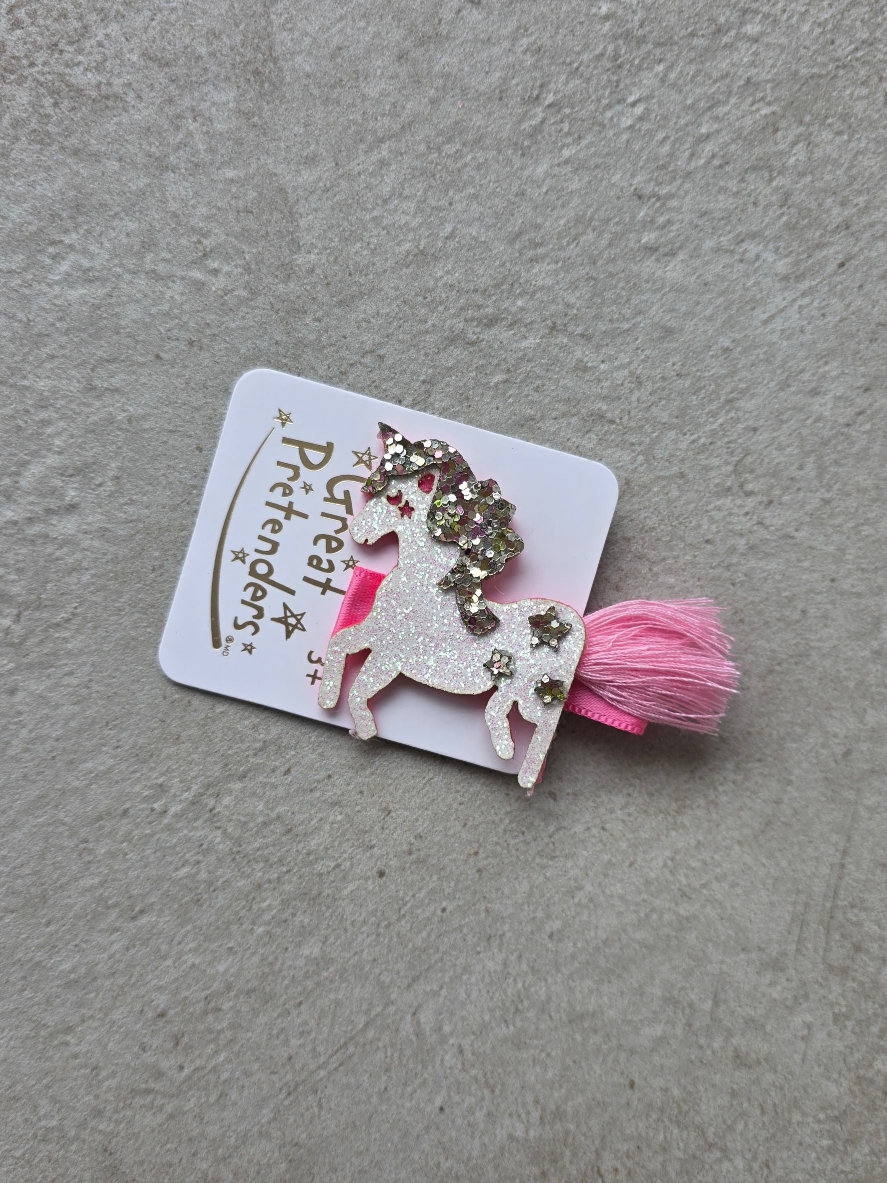 這款充滿奇趣的髮夾以閃亮的白色獨角獸為特色,獨角獸鬃毛綴滿鮮豔的彩色亮片,並飾有三顆閃亮的星星。柔和的粉紅色流蘇尾巴更添俏皮,使其成為任何造型的點睛之筆。這款髮夾兼顧時尚與舒適,獨角獸牢固地固定在結實的金屬鱷魚夾上,夾子內襯柔軟的粉紅色羅緞絲帶,確保髮夾穩固,讓您在每一次冒險中都能安心佩戴。