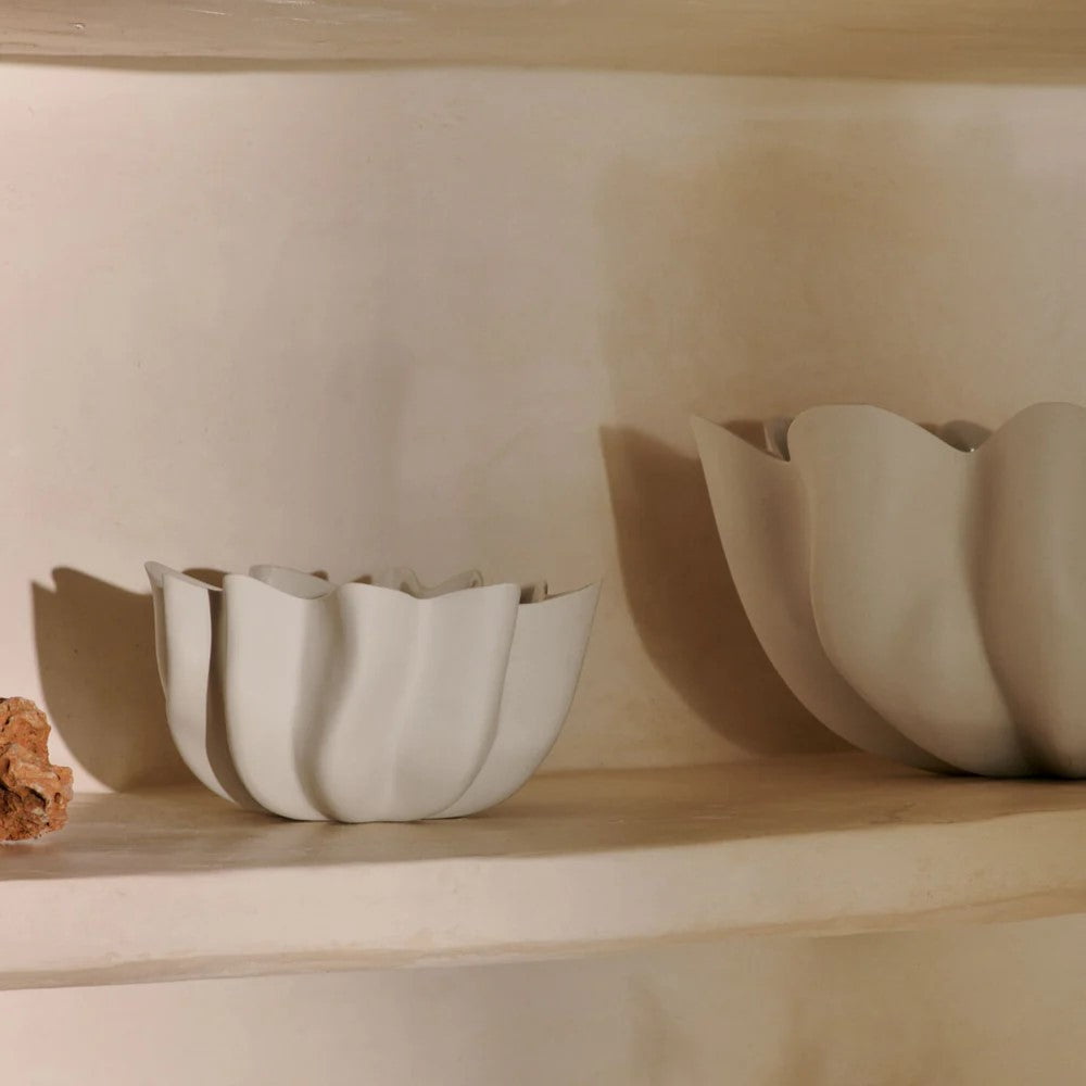 其設計靈感源自垂墜織物的優美線條,呈現出流暢優雅的褶皺。釉面光影交錯,更突顯了碗身動感的曲線,既可用作水果碗或盛菜碗,也可單獨作為裝飾品擺放。