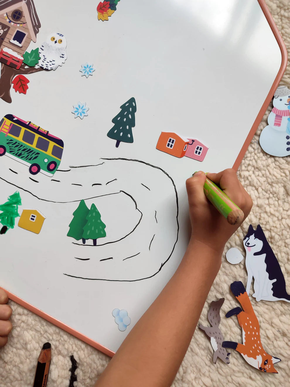 - 多功能性:可使用白板筆繪畫、書寫和磁貼功能於一體,激發兒童的創造力和自由表達