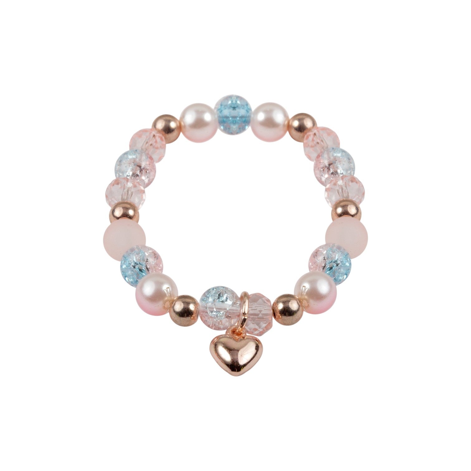 這款手鍊優雅、氣質出眾,由粉紅色、藍色和玫瑰金等多種珠子串成,專為您的小時尚達人打造!最後飾以一顆精緻的心形吊飾。