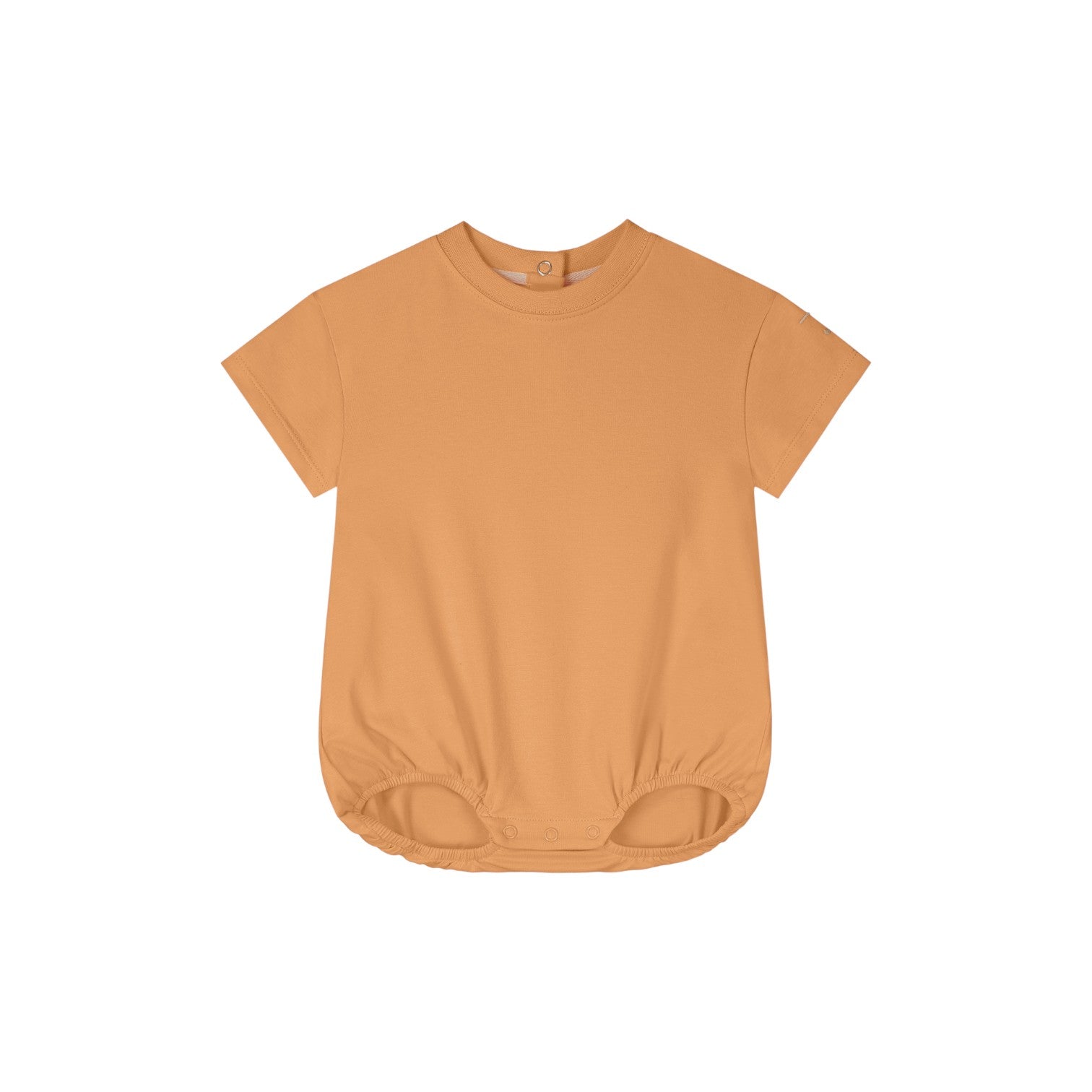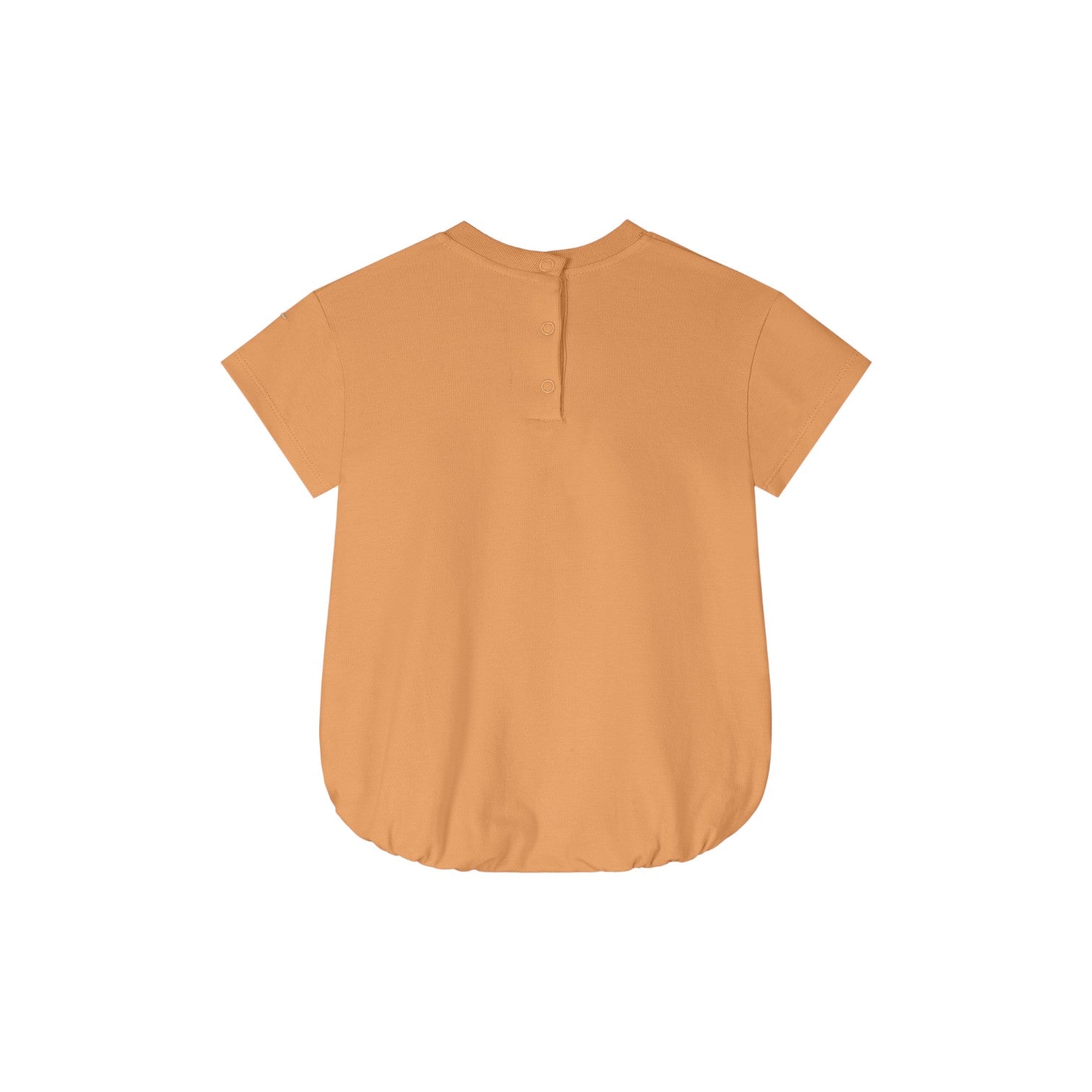 短T造型,螺紋圓領,背面及胯下有開扣設計方便穿脫,褲管鬆緊帶,大腿肉肉的寶寶也不會勒。