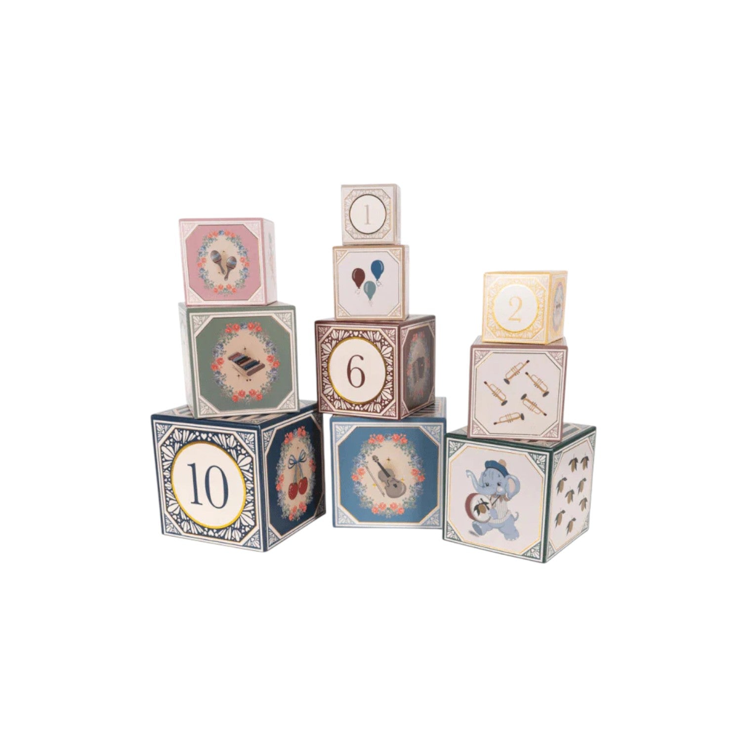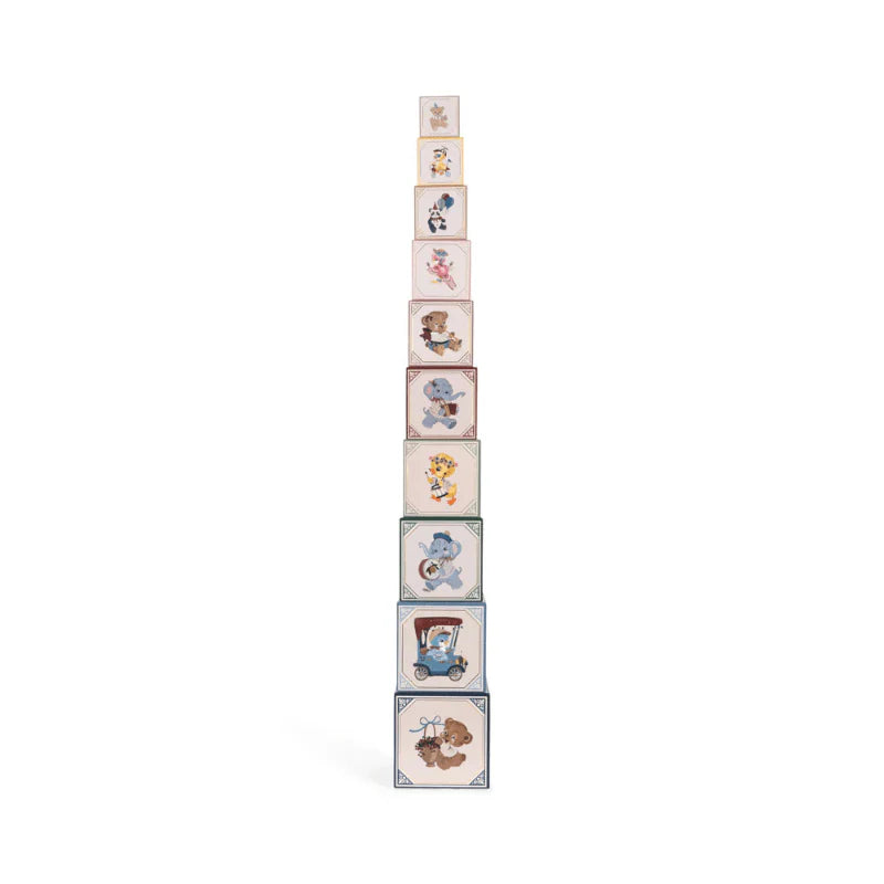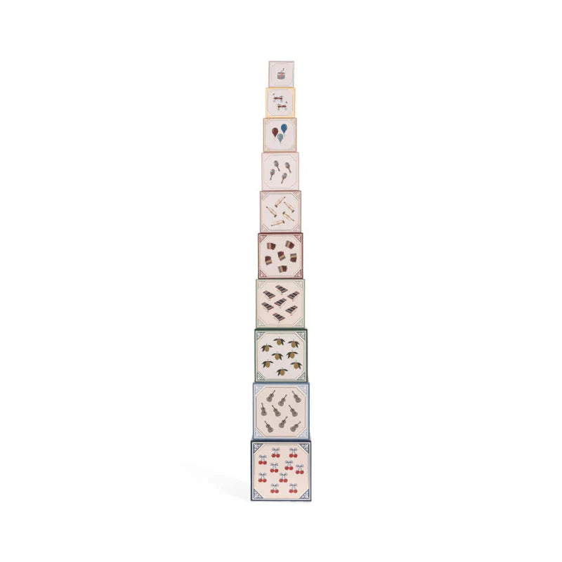這是一款疊疊樂積木,帶有復古風格,孩子們可以盡情堆疊、推倒,然後反覆搭建。每個積木盒上都印有 1 到 10 的數字,因此這款遊戲還能變成一個小小的數數遊戲。每一面皆有精美的插圖,拿來當作擺飾也可以,復古且精緻!