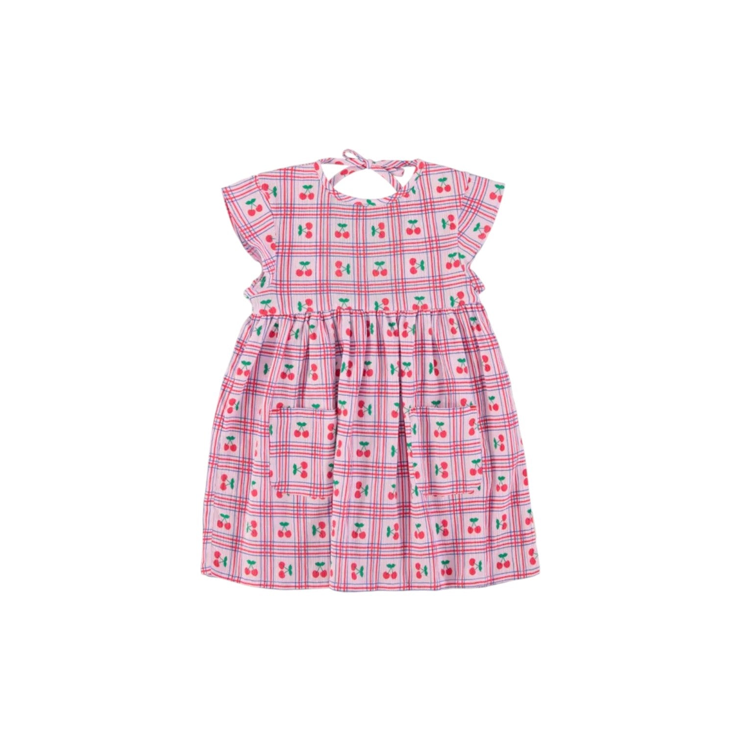 連身短裙洋裝,袖子是小飛袖,背後綁帶可依照每個肩寬不同調整,美背太適合夏天跟充滿渡假氛圍的地方了!