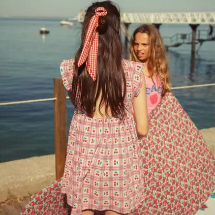 Piupiuchick - 荷葉袖美背短裙洋裝 - lilac cherries