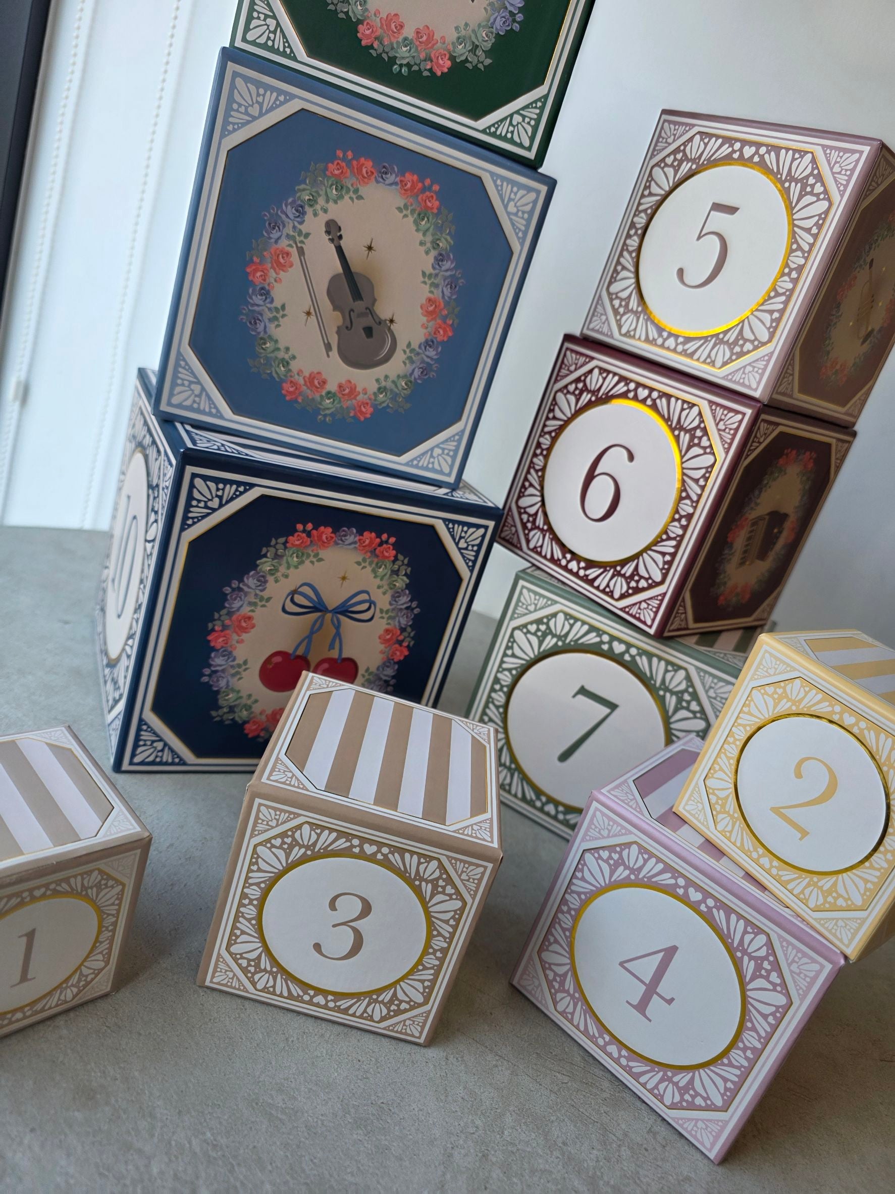 這是一款疊疊樂積木,帶有復古風格,孩子們可以盡情堆疊、推倒,然後反覆搭建。每個積木盒上都印有 1 到 10 的數字,因此這款遊戲還能變成一個小小的數數遊戲。每一面皆有精美的插圖,拿來當作擺飾也可以,復古且精緻!