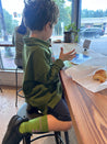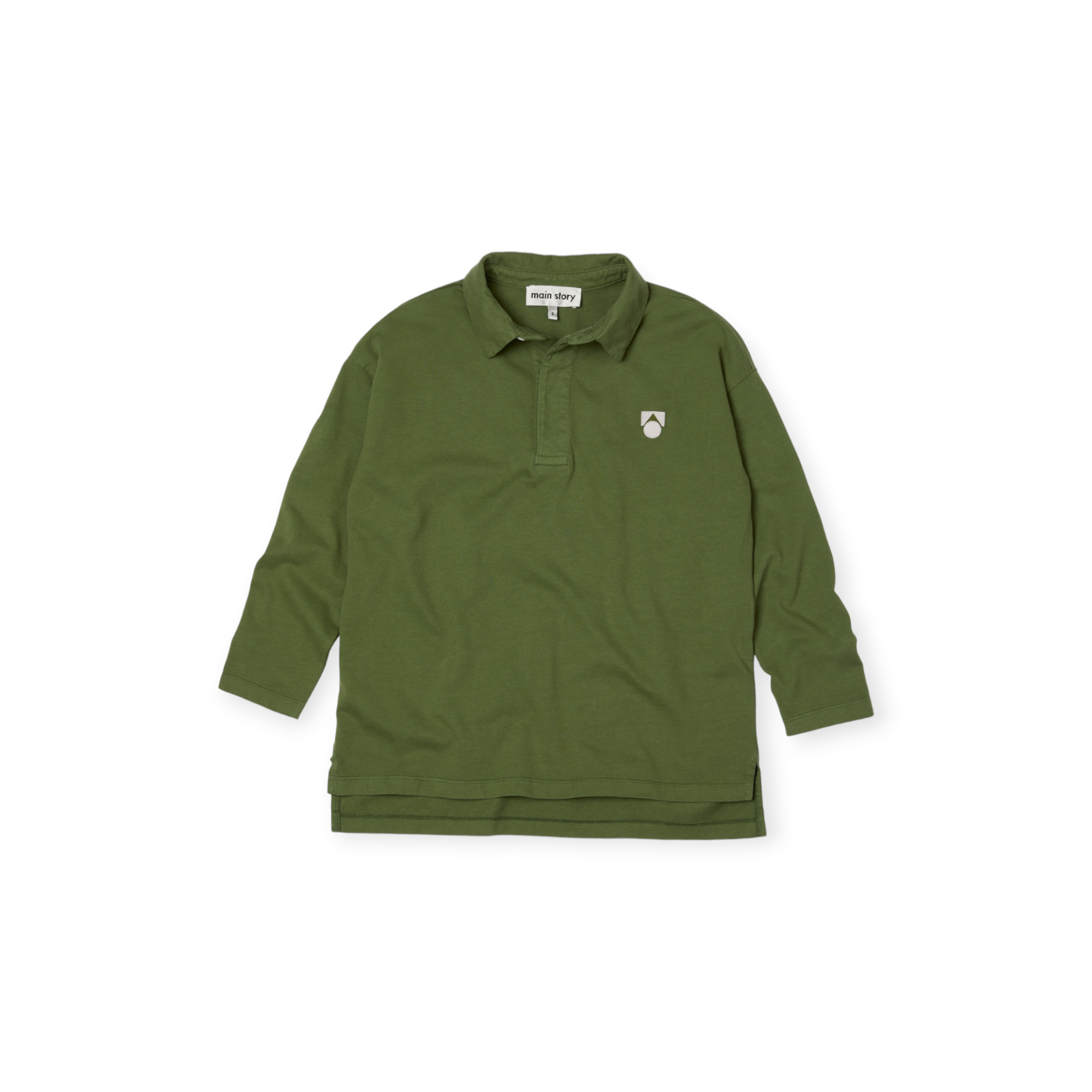 版型寬鬆、落肩設計的Polo衫,下擺有開岔、前短後長,材質為有機棉柔軟舒適。