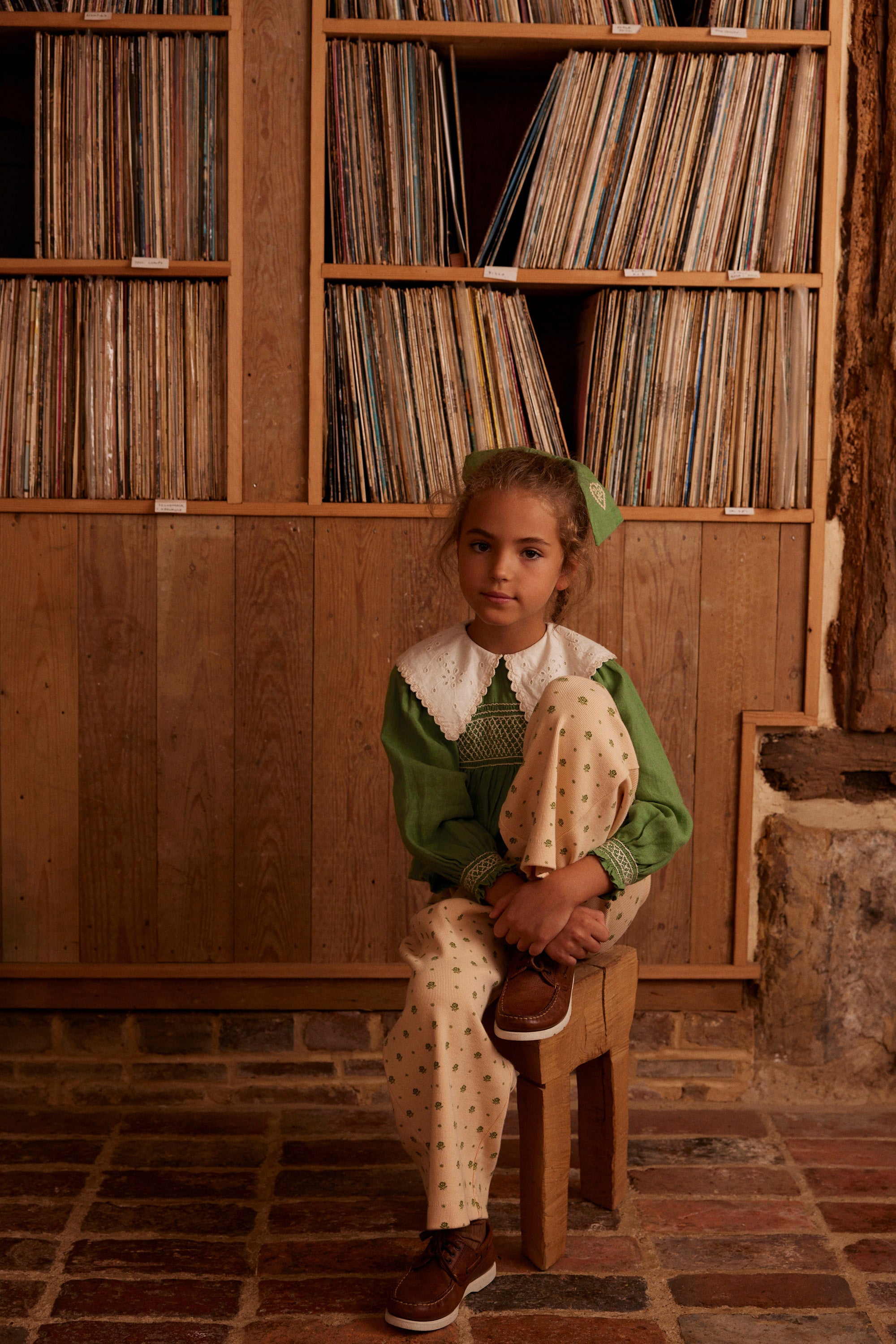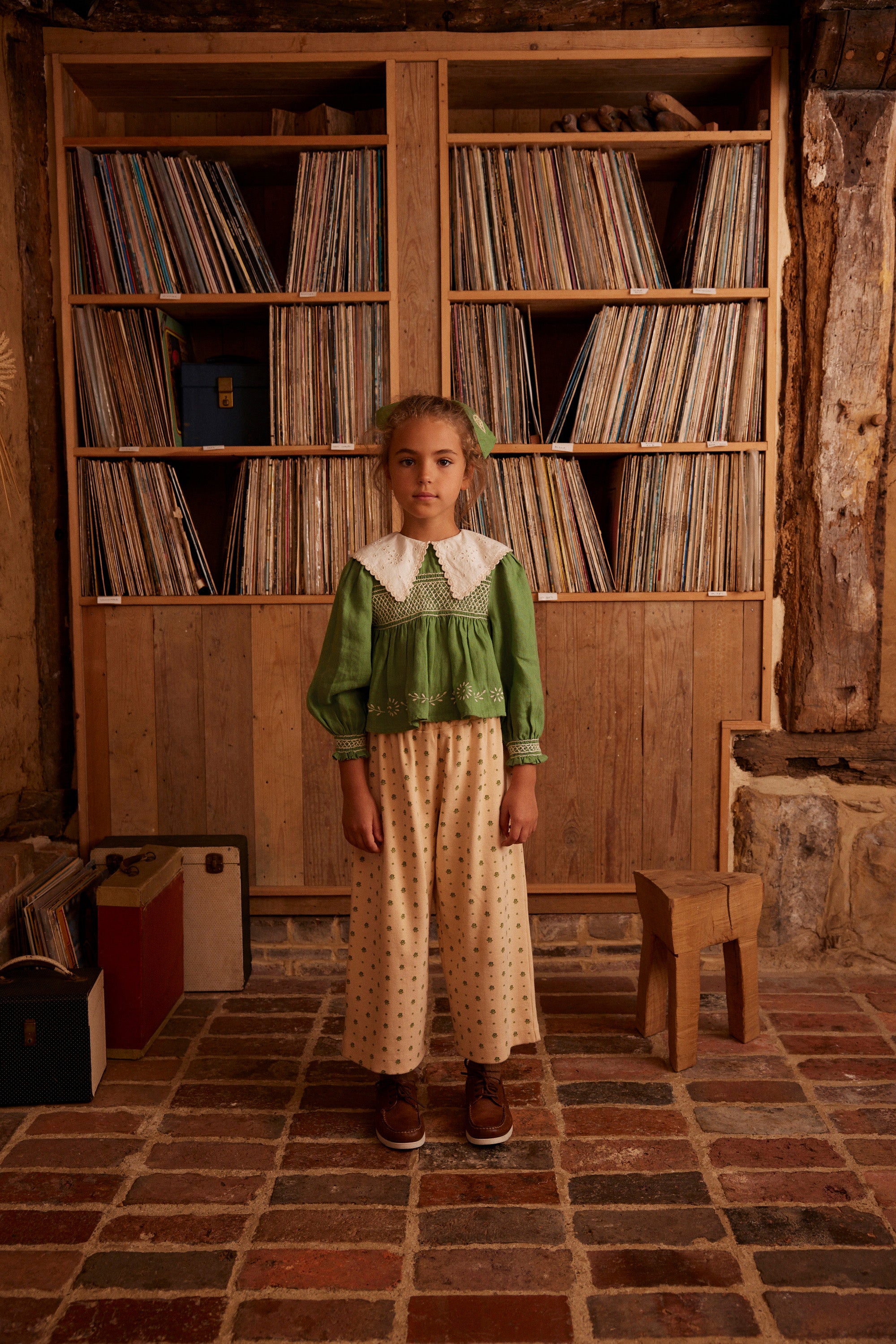 這款精美的 Cornelia 新女式襯衫採用我們復古綠亞麻布料精心製作而成。超大英式刺繡領,輕柔蓬鬆的袖口,胸部撞色手工褶飾,展現甜美輪廓。裙擺飾有漂亮的撞色花卉刺繡。袖口飾有手工褶飾,領口飾有扇貝形鉤針飾邊。我們喜歡將 Cornelia 女襯衫搭配工裝褲或圍裙,彰顯個性,或搭配我們的 Molly 或 Wini 長褲。