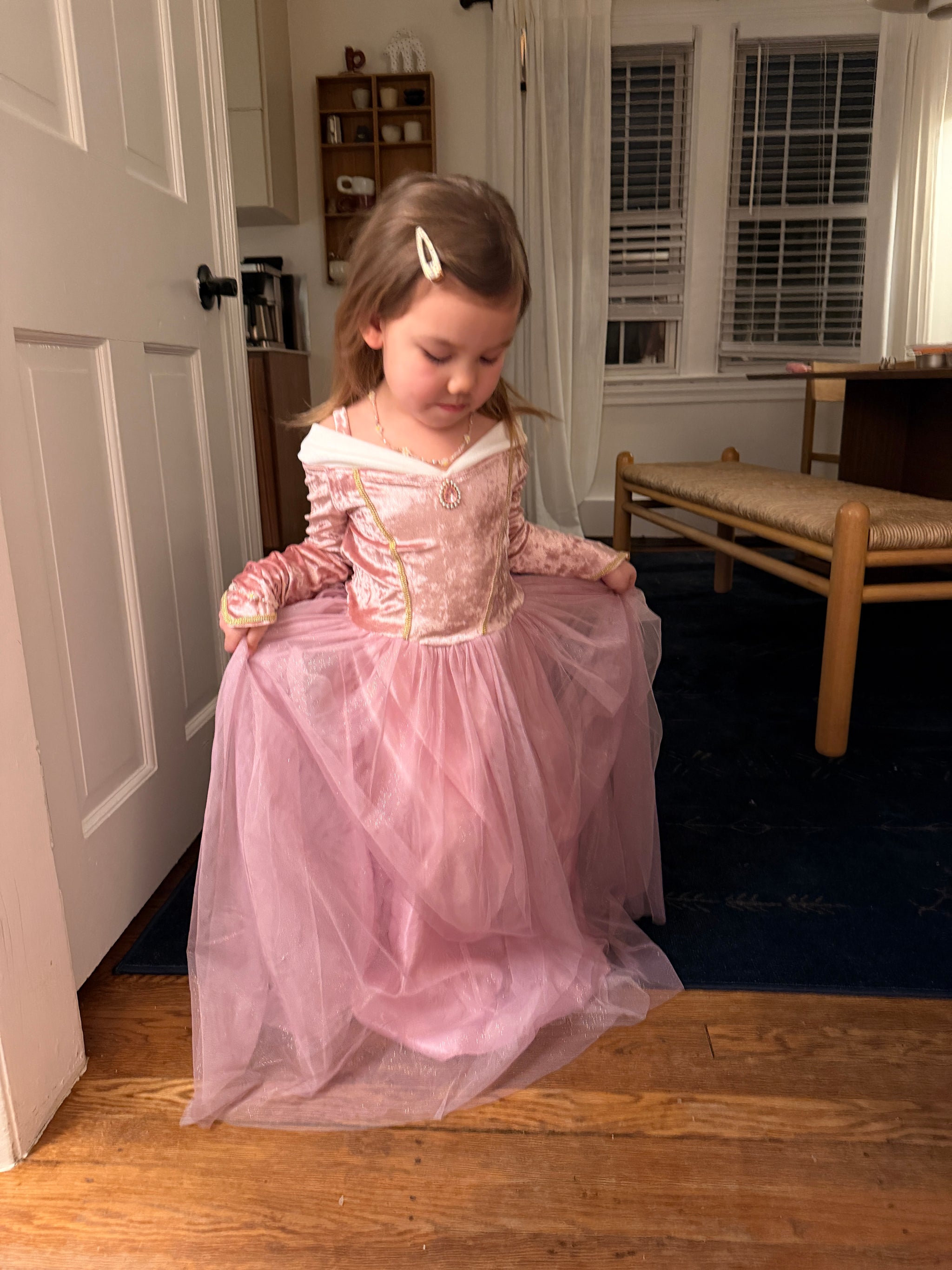 這款及地長裙飾有飄逸的薄紗裙擺,增添動感,非常適合旋轉和跳舞。無論是參加化裝舞會還是奇幻的裝扮日,這條裙子都能讓您的小公主感覺自己就像是魔法王國裡的公主。