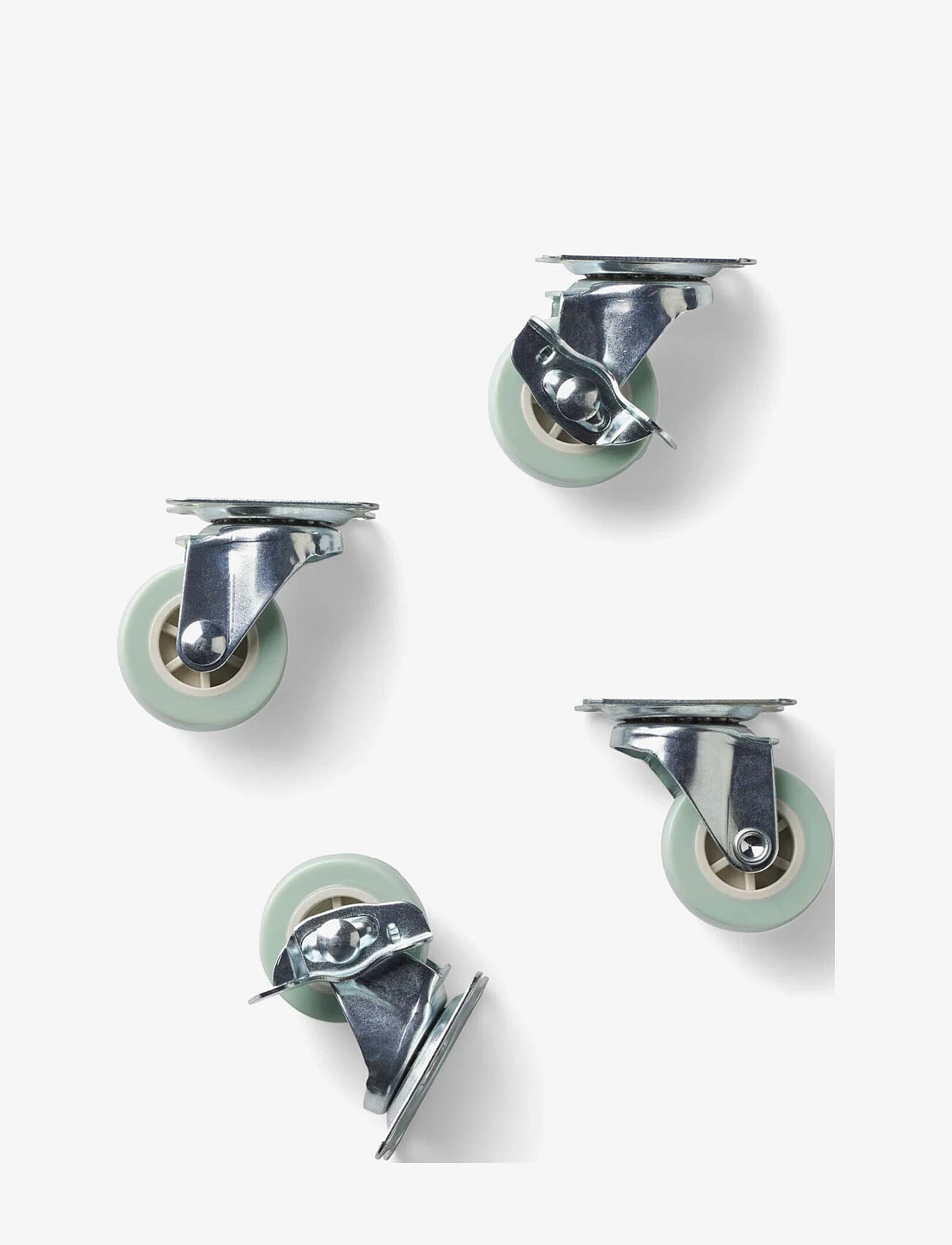 輪子4入一組販售,可以裝在收納箱底部,使收納箱移動可以更加省力及便利,輕鬆地整理每一個區域。最大承重為 50 公斤。