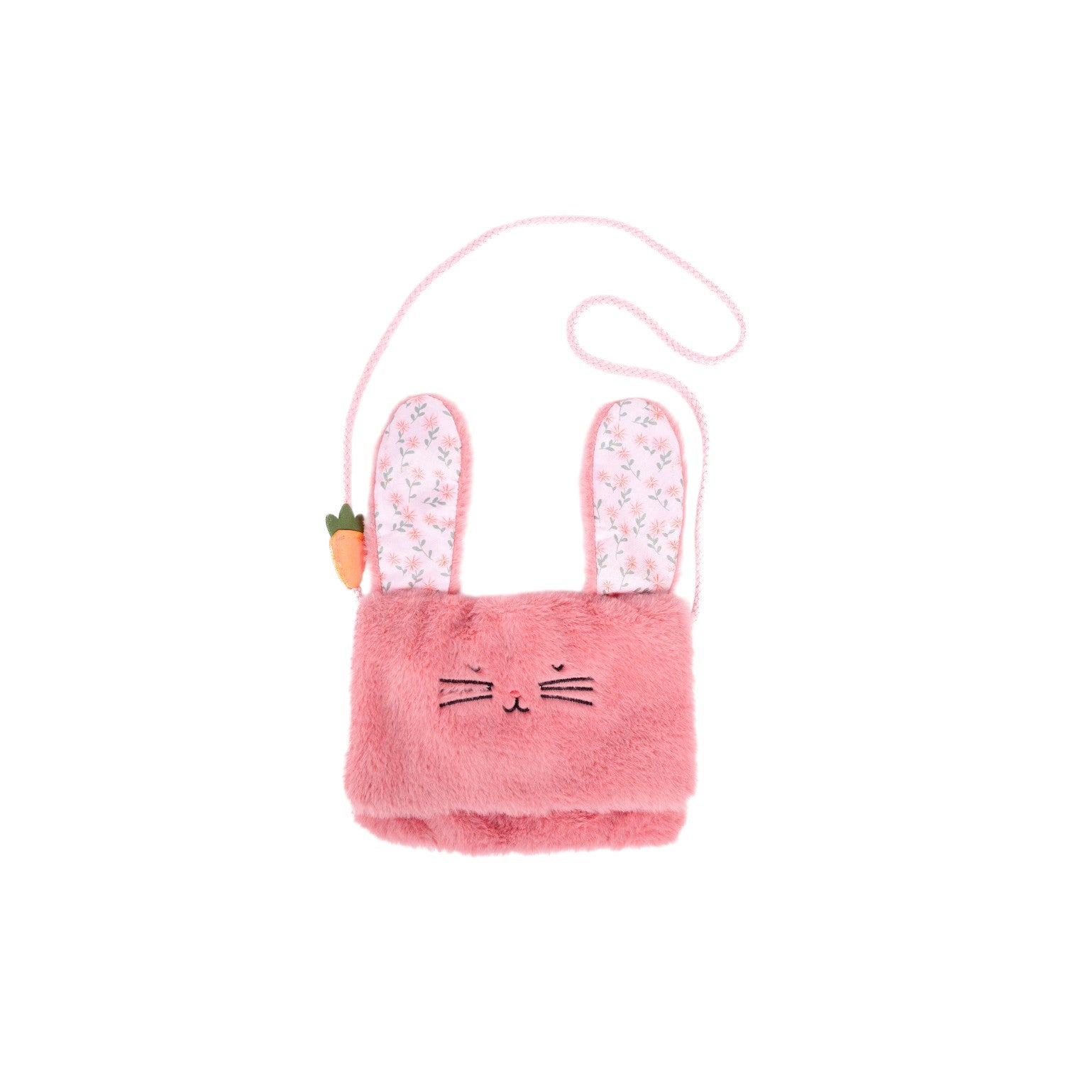 這款亮粉色的毛絨手提包造型可愛,像萌萌的小兔子,還配有可以翻起來或放下的耳朵。翻起耳朵,就能看到充滿春日氣息的迷人圖案,更添幾分趣味和俏皮。