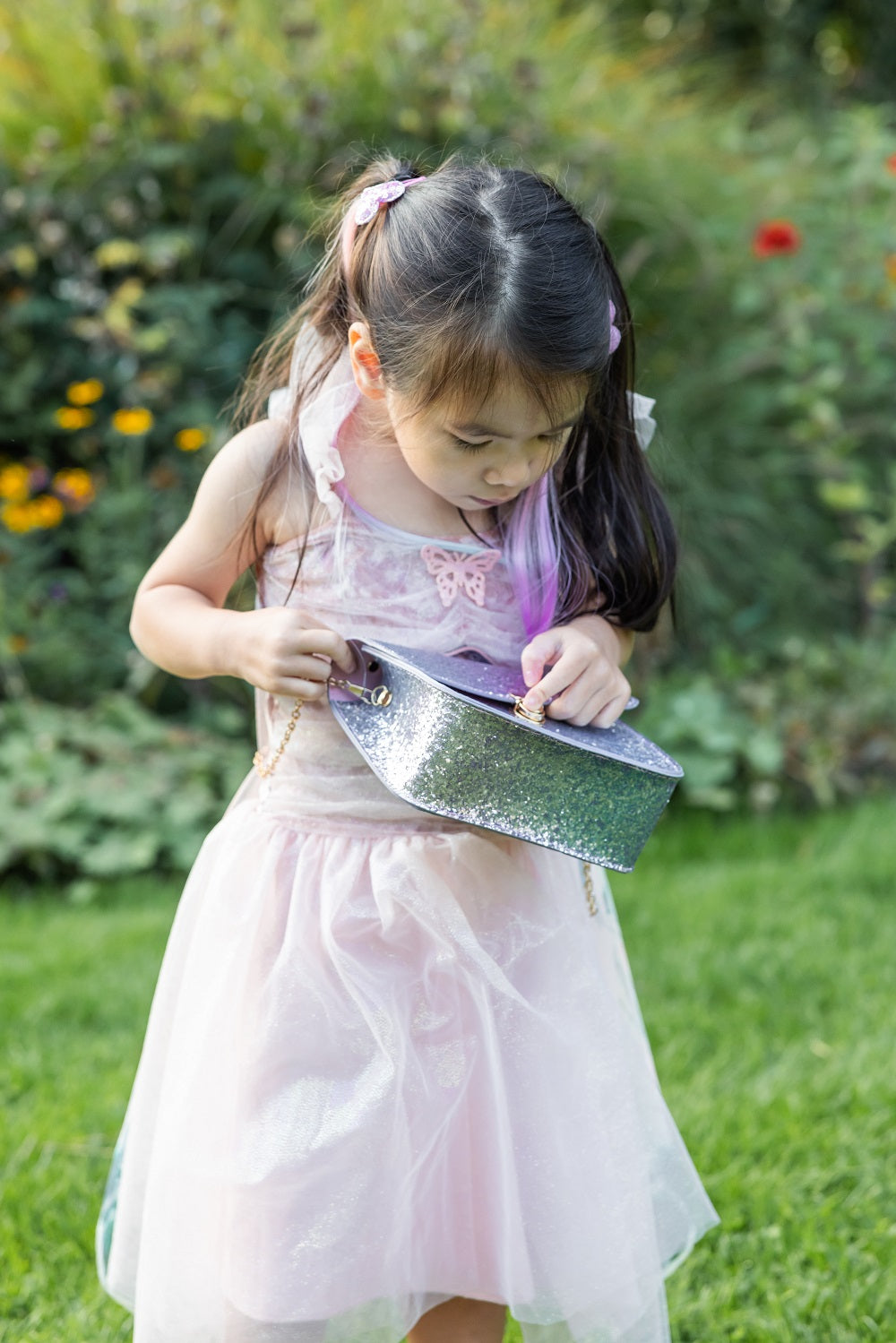 這款閃耀奪目的 Skyline 派對手提包,是每個小小時尚明星的完美配飾,讓您閃耀全場!這款耀眼的手提包通體閃閃發光,在光線下熠熠生輝。金色鏈條肩帶和同色係金色羈扣更添優雅氣質,粉紅色頂部提把則可將其作為時尚手提包使用。無論是派對、外出,或是任何需要展現魅力的時刻,這款手提包都能瞬間為您的任何裝扮增添光彩!