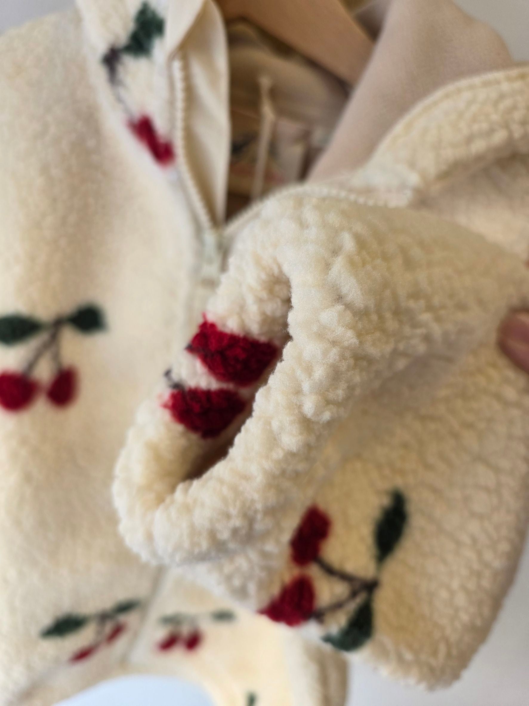 Konges Sløjd - 櫻桃鋪毛連帽外套 - ma grande cerise