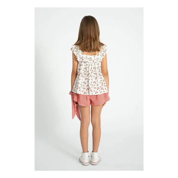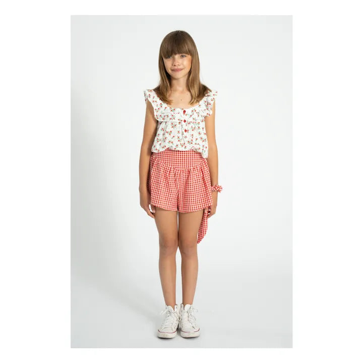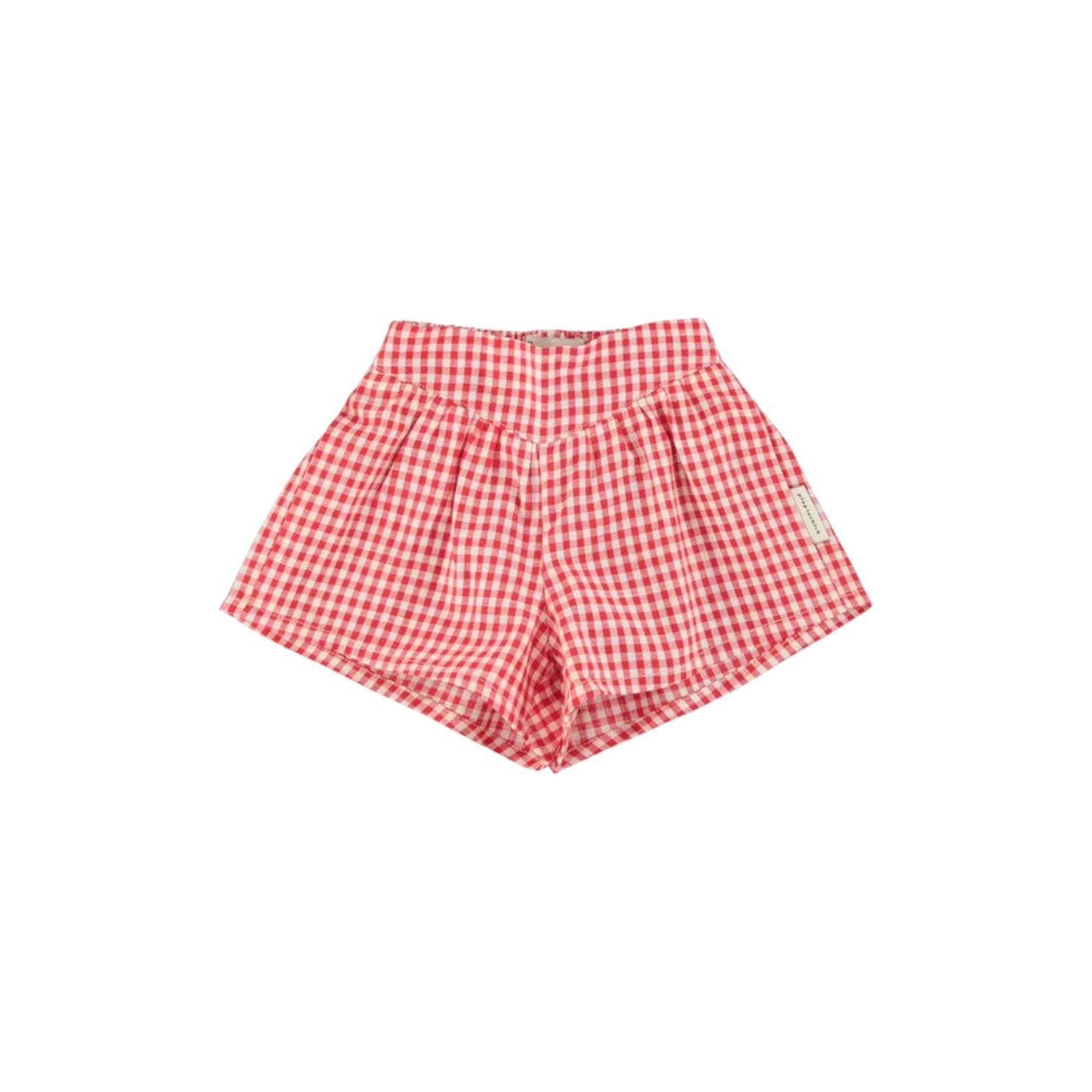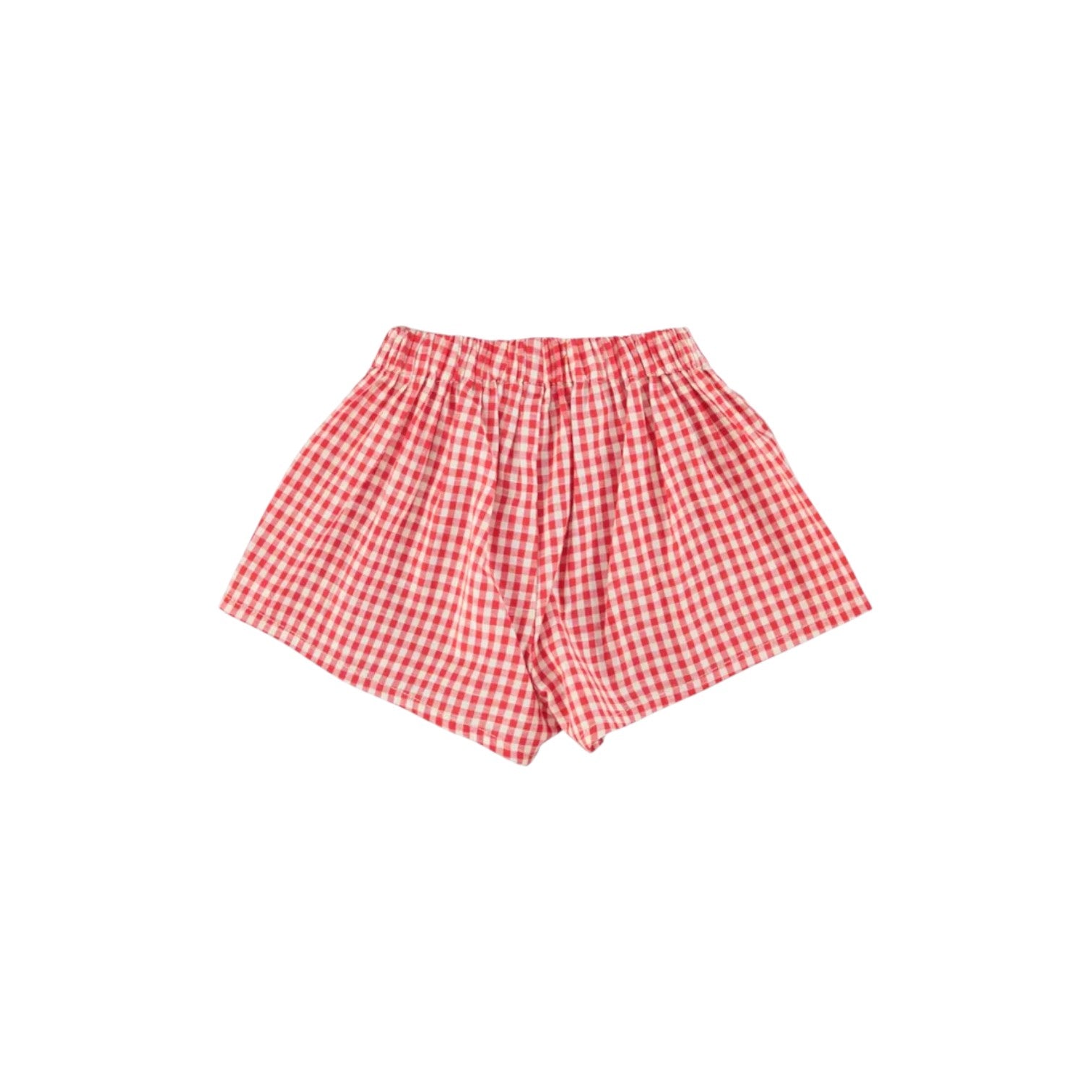 Piupiuchick - 有機棉格紋短褲 - red checkered