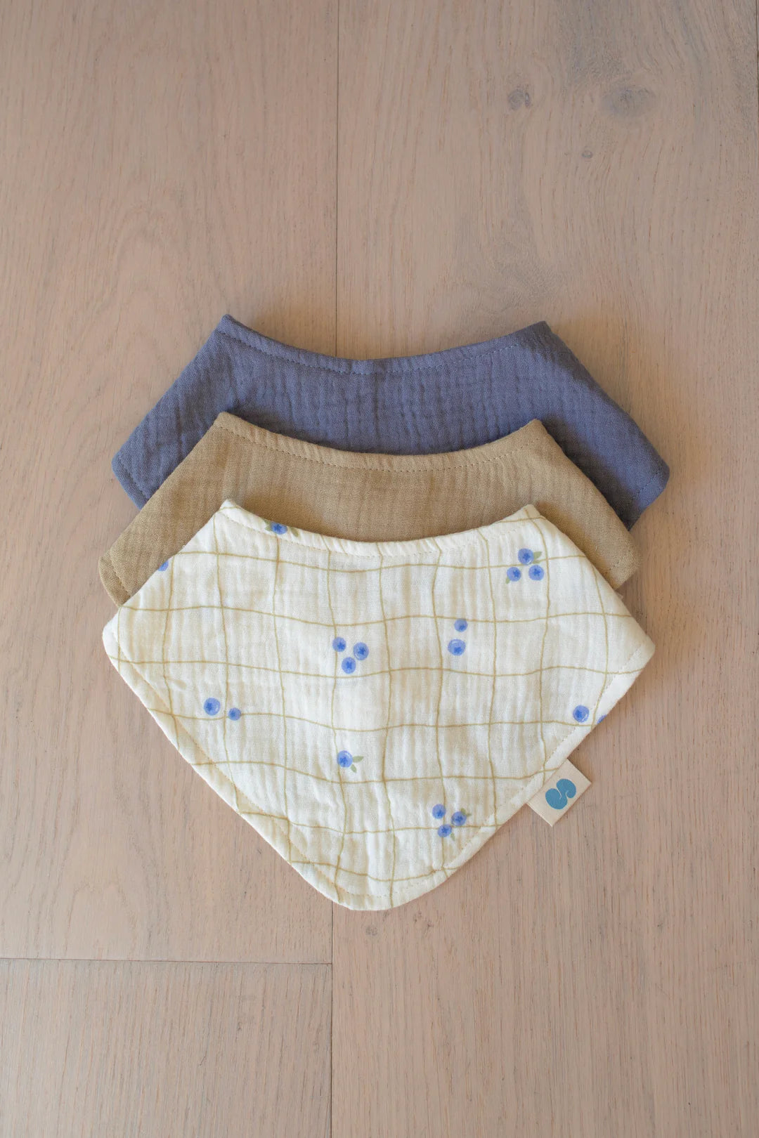 Soft Spot - 有機棉紗領巾口水巾3入組 - Blueberries