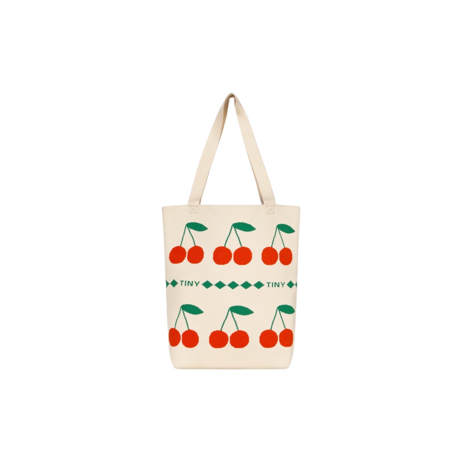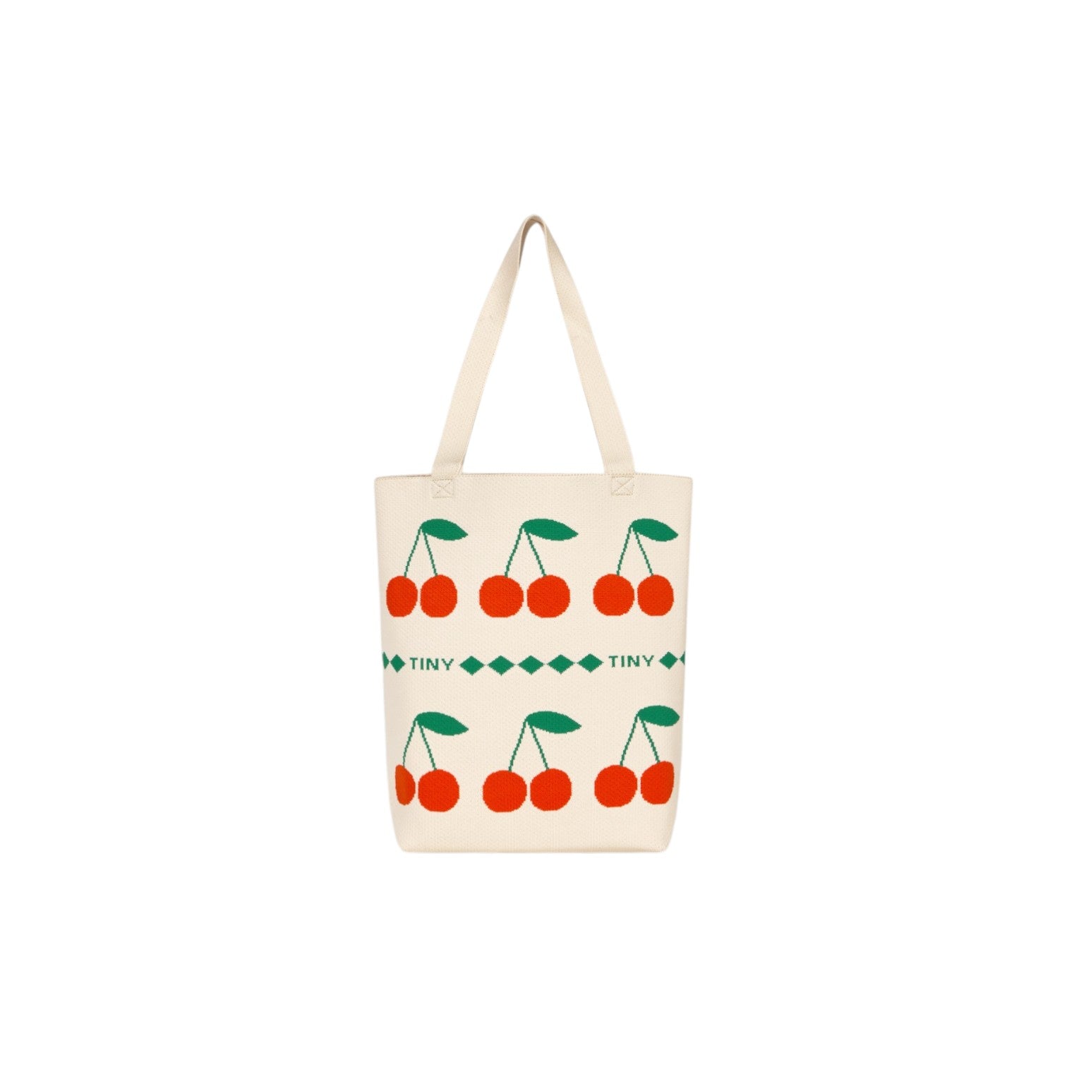這款手提包以藍色方形為底,飾有迷人的提花櫻桃圖案。它配有頂部提把和單肩帶,既可手提也可肩背,用途廣泛。包型挺括,內部空間寬敞,是日常使用的理想之選,無論是購物、上班或休閒出行,都能輕鬆應付。這款兼具趣味性和實用性的配件,能為任何造型增添一抹俏皮感。