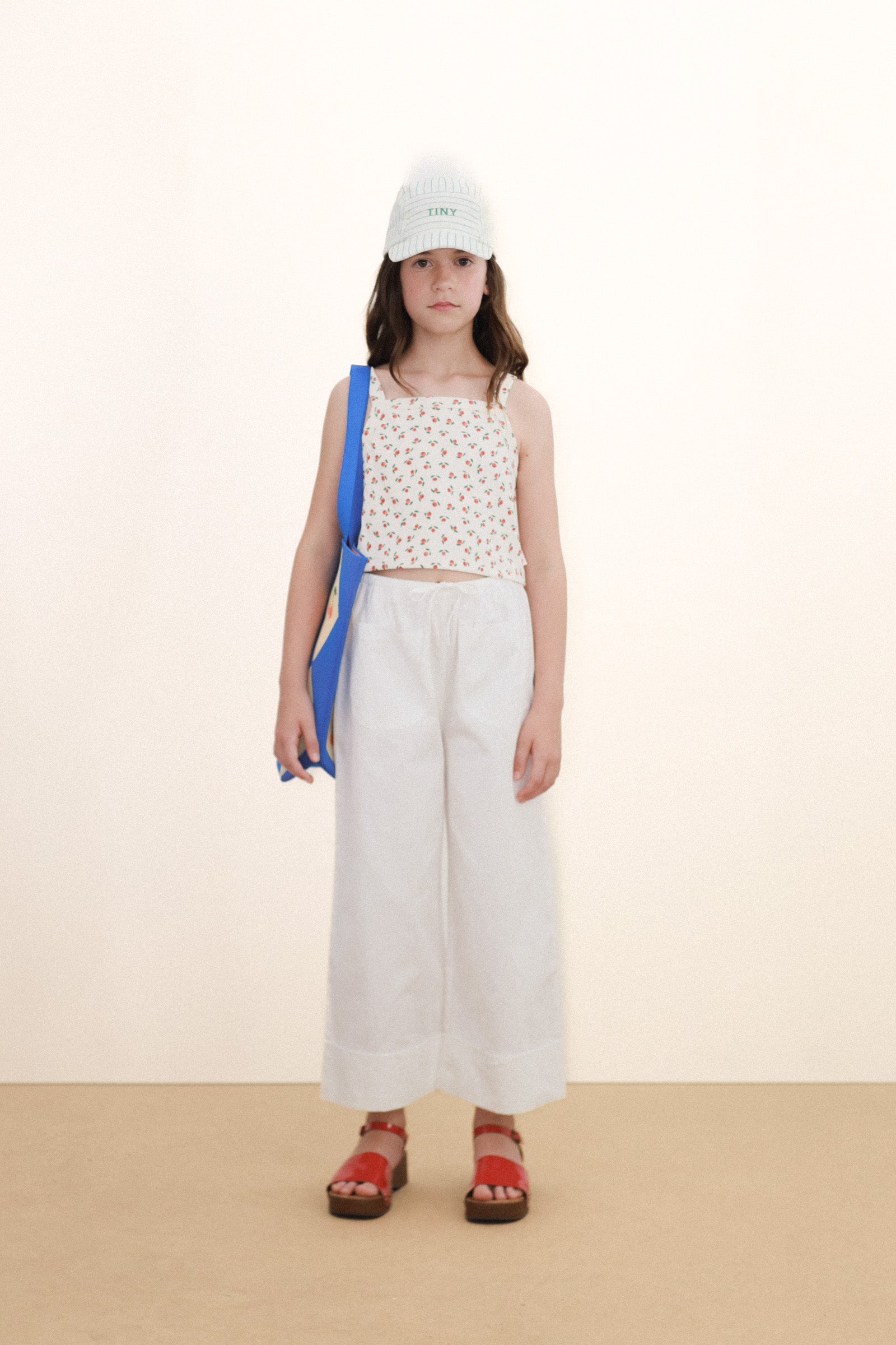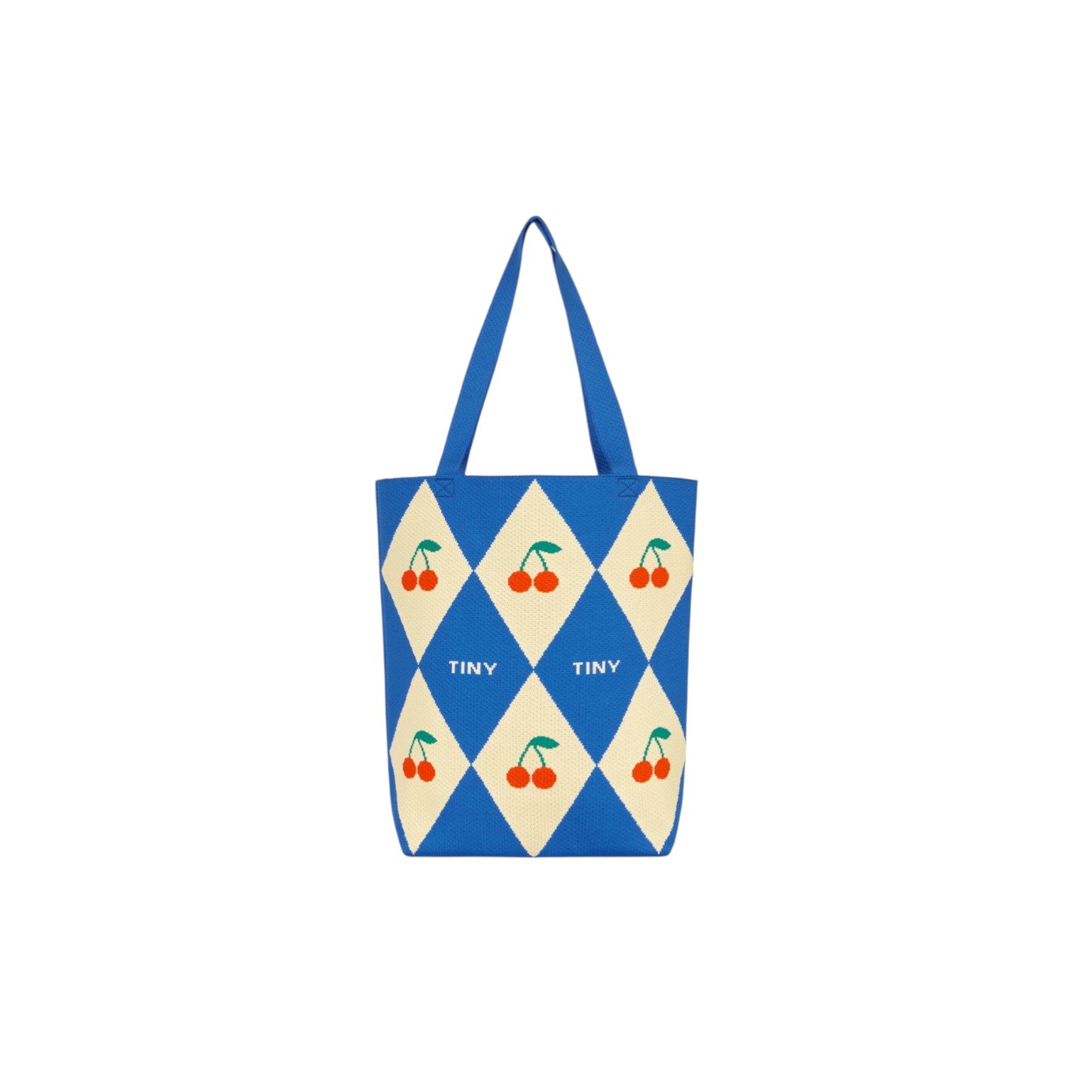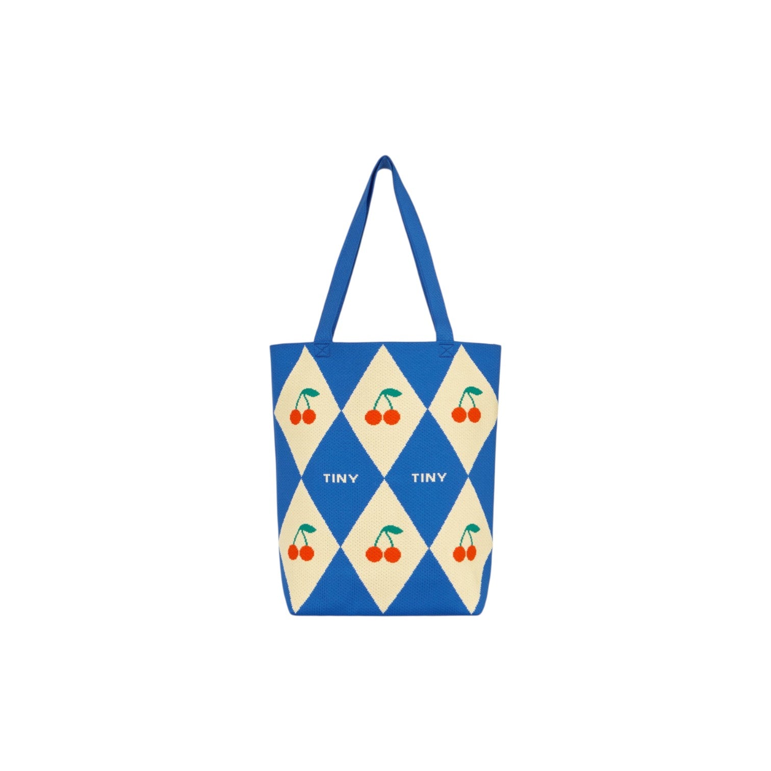 這款手提包以藍色方形為底,飾有迷人的提花菱形圖案。它配有頂部提把和單肩帶,既可手提也可肩背,用途廣泛。包型挺括,內部空間寬敞,是日常使用的理想之選,無論是購物、上班或休閒出行,都能輕鬆應付。這款兼具趣味性和實用性的配件,能為任何造型增添一抹俏皮感。